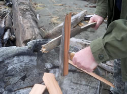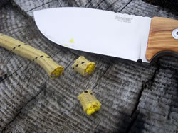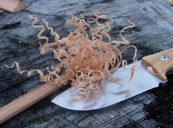 On this other photo the knife is separating some thin shavings from a notch.