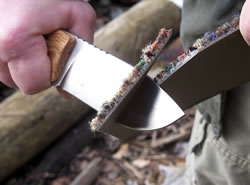 In my opinion another important job in this area is splitting wood or batoning. This comes handy, for example to get the dry inside of otherwise wet and moist wood for fire making. But it is useful for a number of other purposes, as well. The M3 had no problem with this chore at all and performed well.